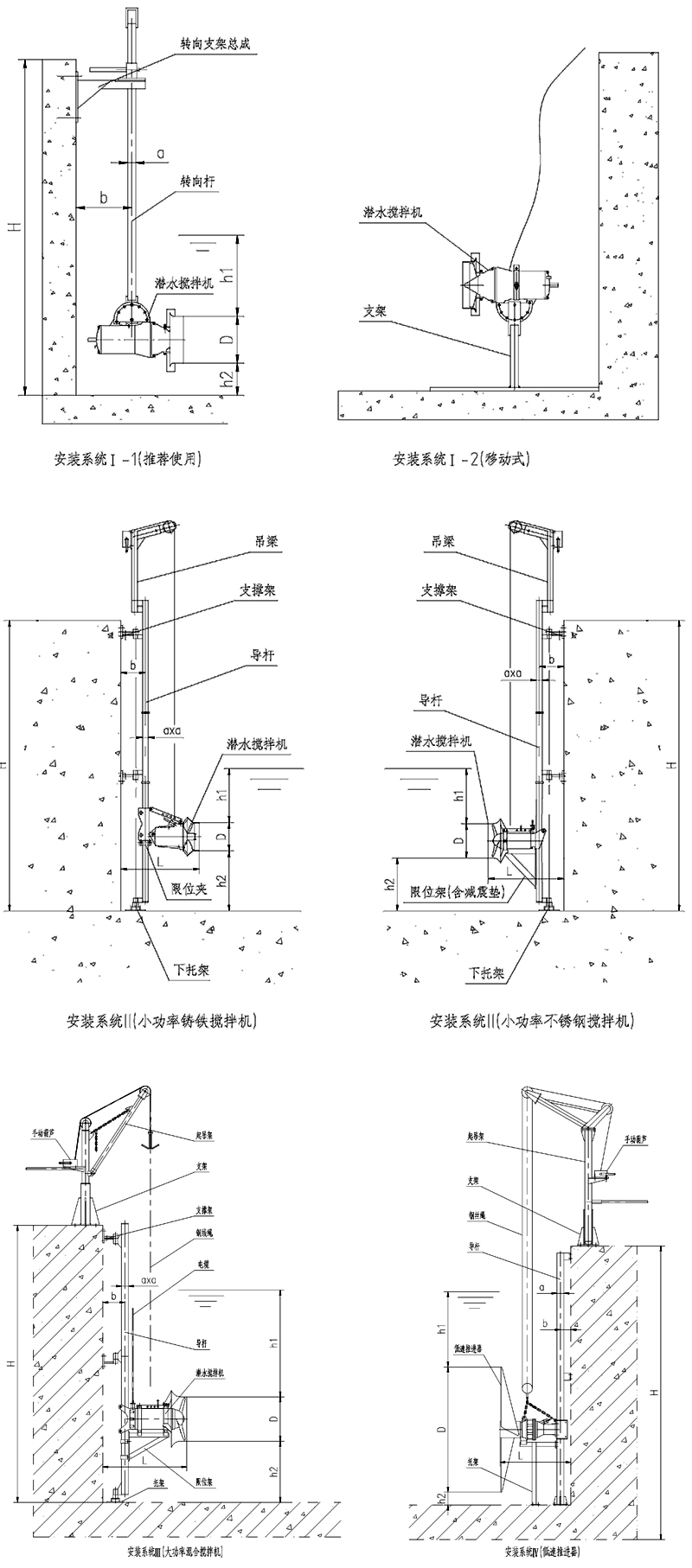 潛水攪拌機必需完全潛入水中工作;不能在易燃易爆或有強 腐蝕性液體的環(huán)境中工作;鋼膨脹螺栓須按要求固定,安裝完畢后,必須將電纜拉緊固定好。
