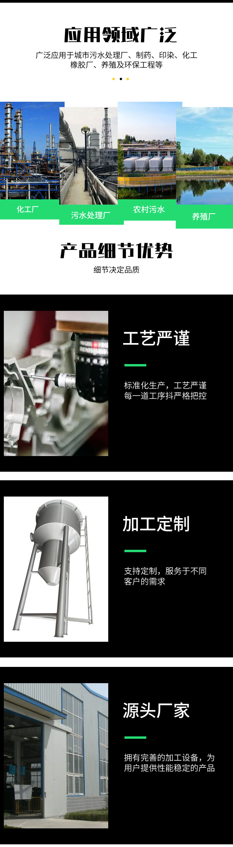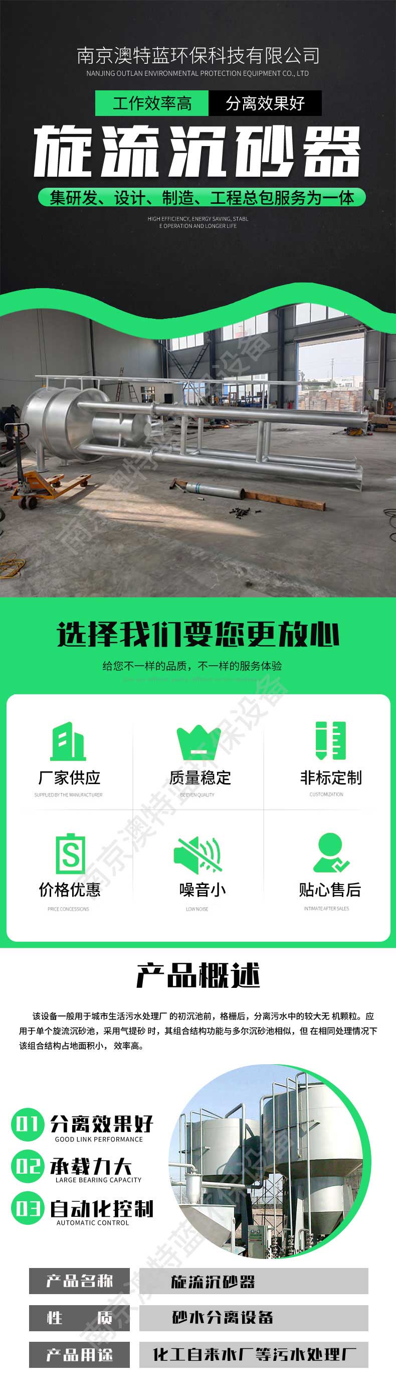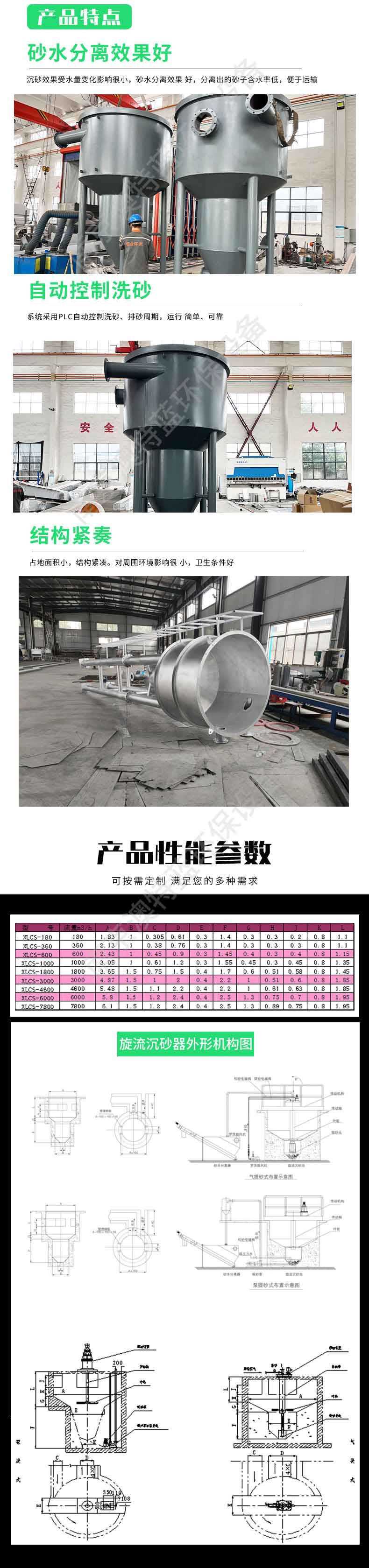 1.該設(shè)備一般用于城市生活污水處理廠的初沉池前,格柵后,分離污水中的較大無機(jī)顆粒(一般直徑大于0.5mm)。大部分采用空氣提砂,若采用砂泵提砂時一般對磨損要求較高。鋼制池體適用中小型流量使用。2.應(yīng)用于單個旋流沉砂池,采用氣提砂時,其組合結(jié)構(gòu)功能與多與沉砂池相似,但在相同處理情況下該組合結(jié)構(gòu)占地面積小,效率高。