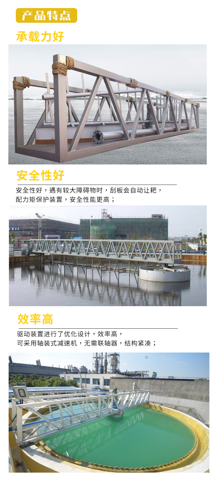 用途 ZCGN 型中心傳動垂架式刮泥機(jī)多用于污水處理廠圓形沉定池,將沉降在池底的污泥刮集至集混池面的浮渣撇向集渣斗,以便進(jìn)一步處理。